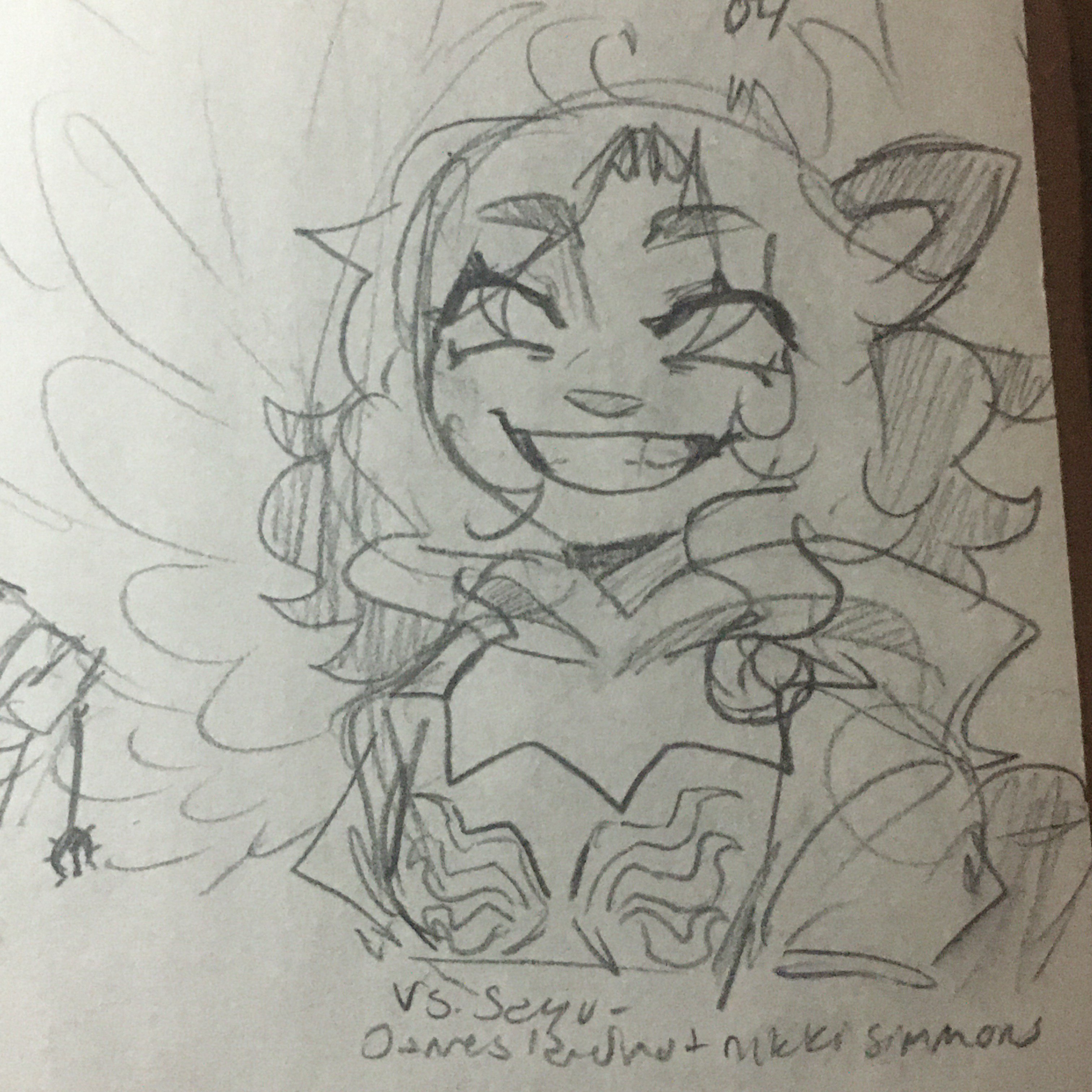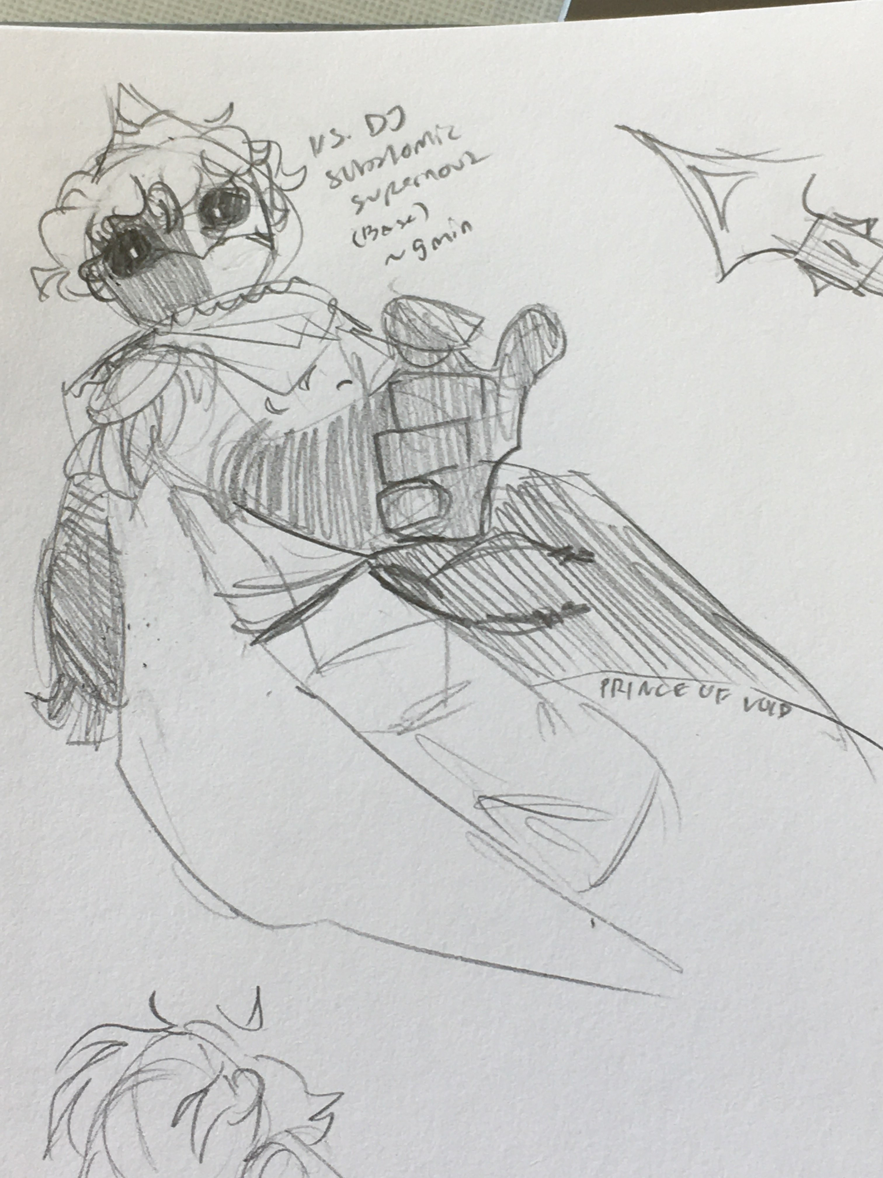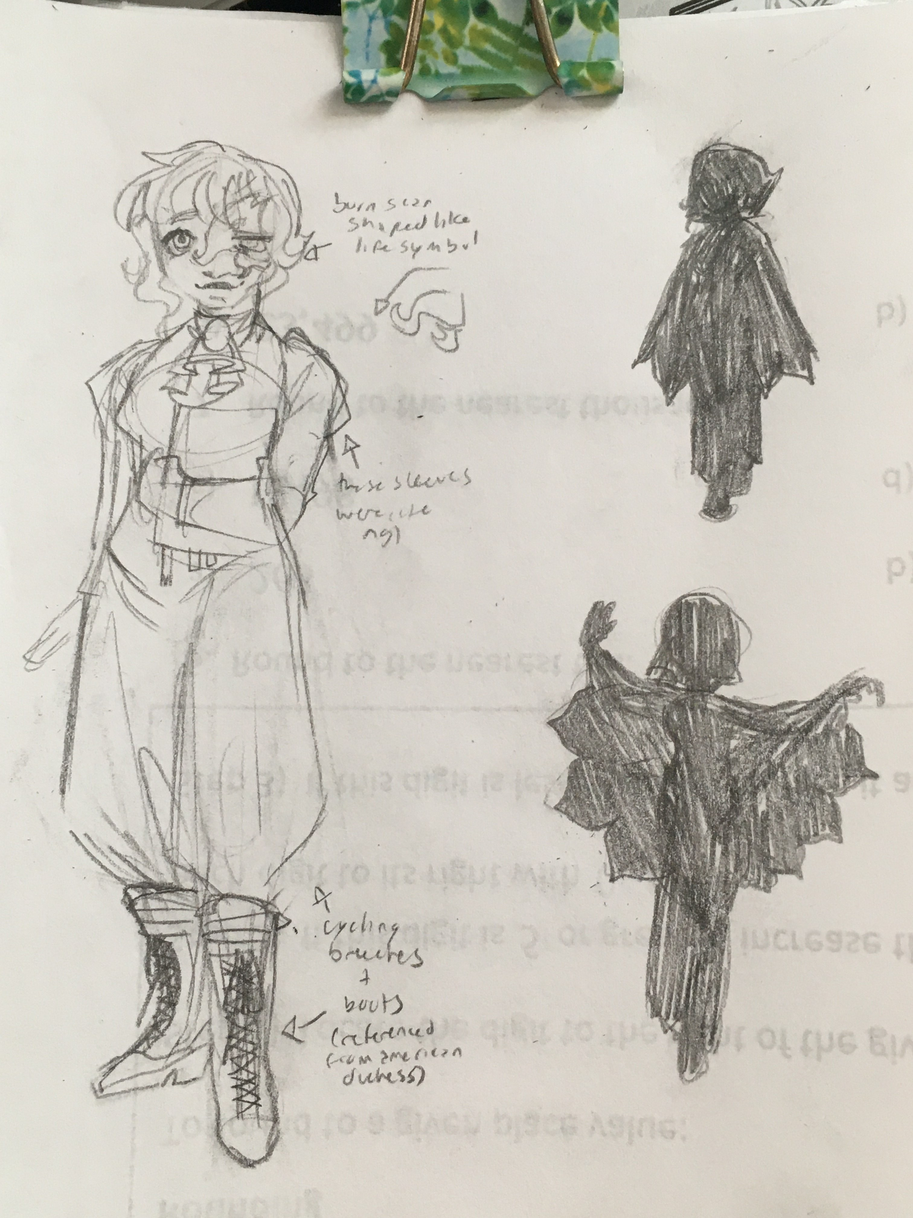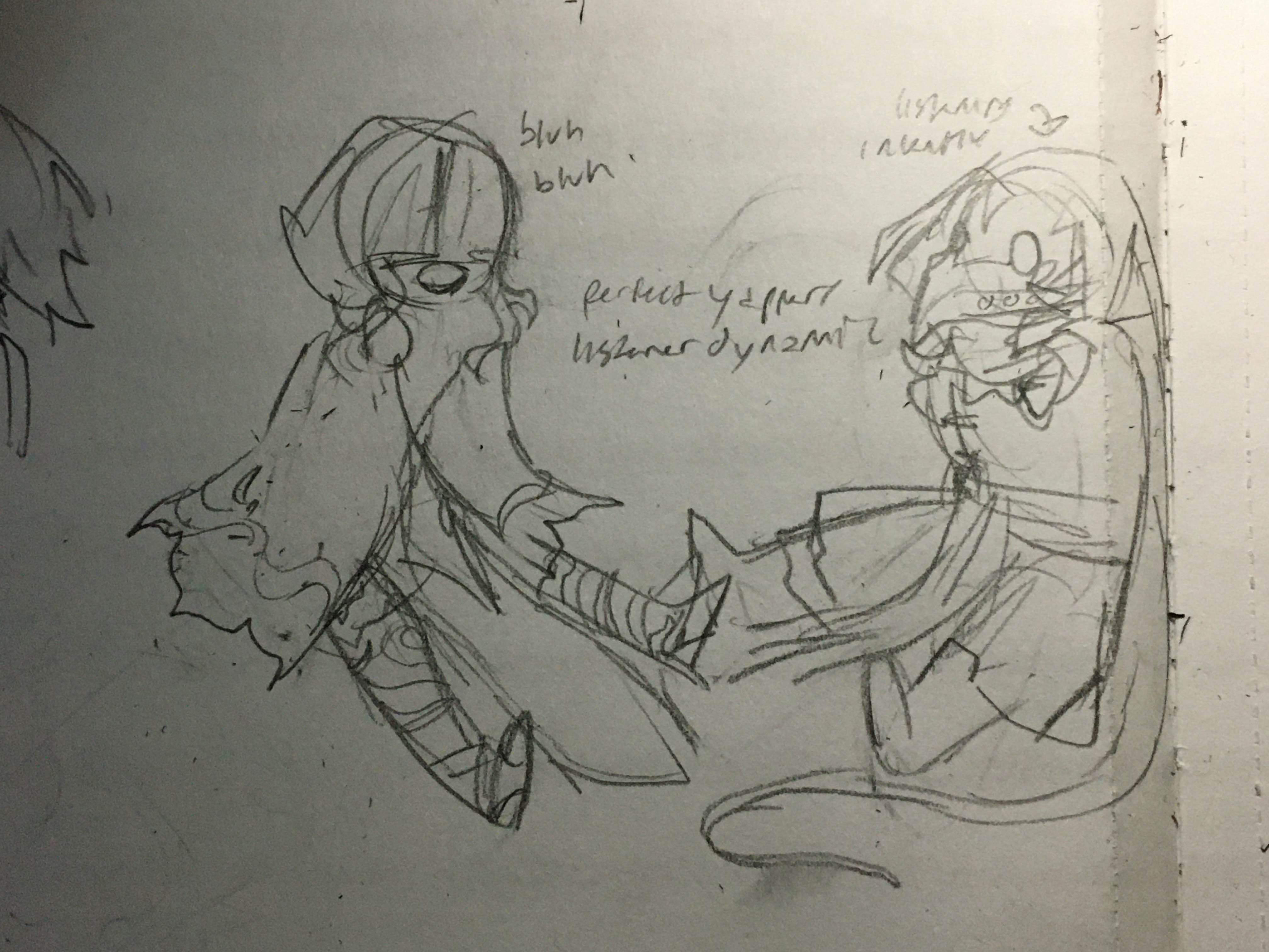 some notes, trying to bring in aspects of the other characters into his design.