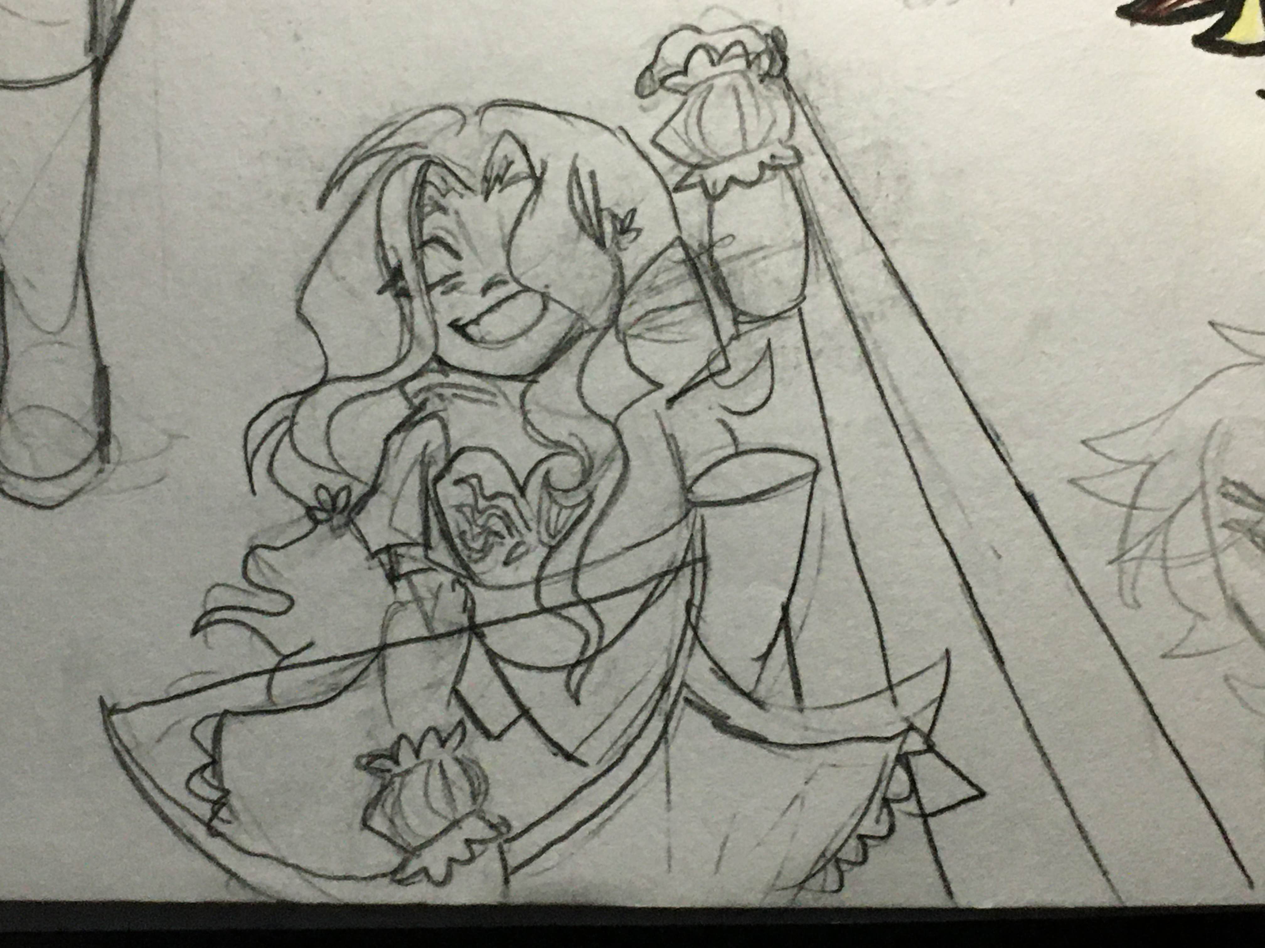 kind of a shitposty doodle, june being so tall she has to basically kneel to not bonk her head on every doorframe she goes through.