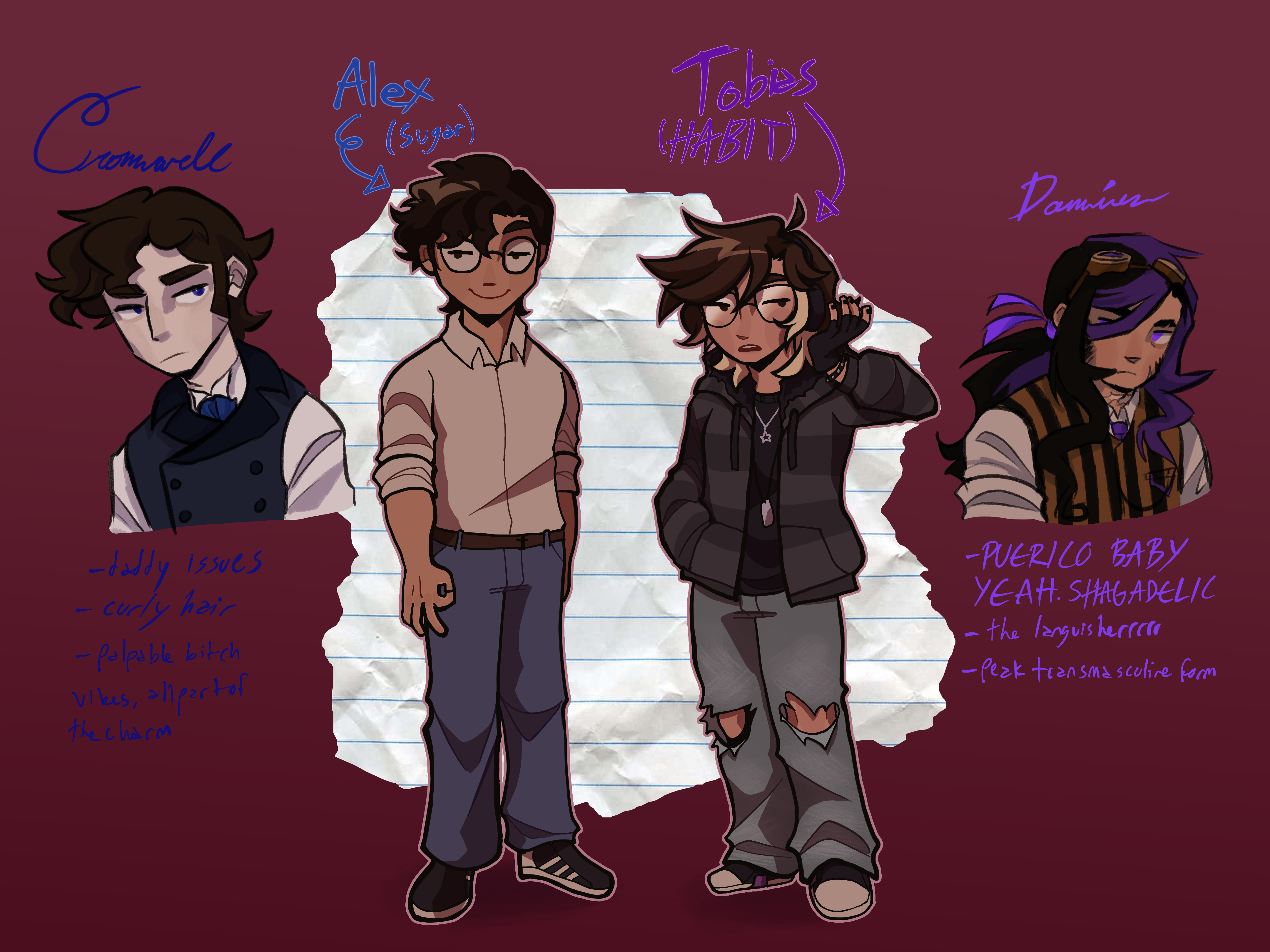 working on filling out all the pages. so far i've gotten the project lore, character list, and credits pages set up.
